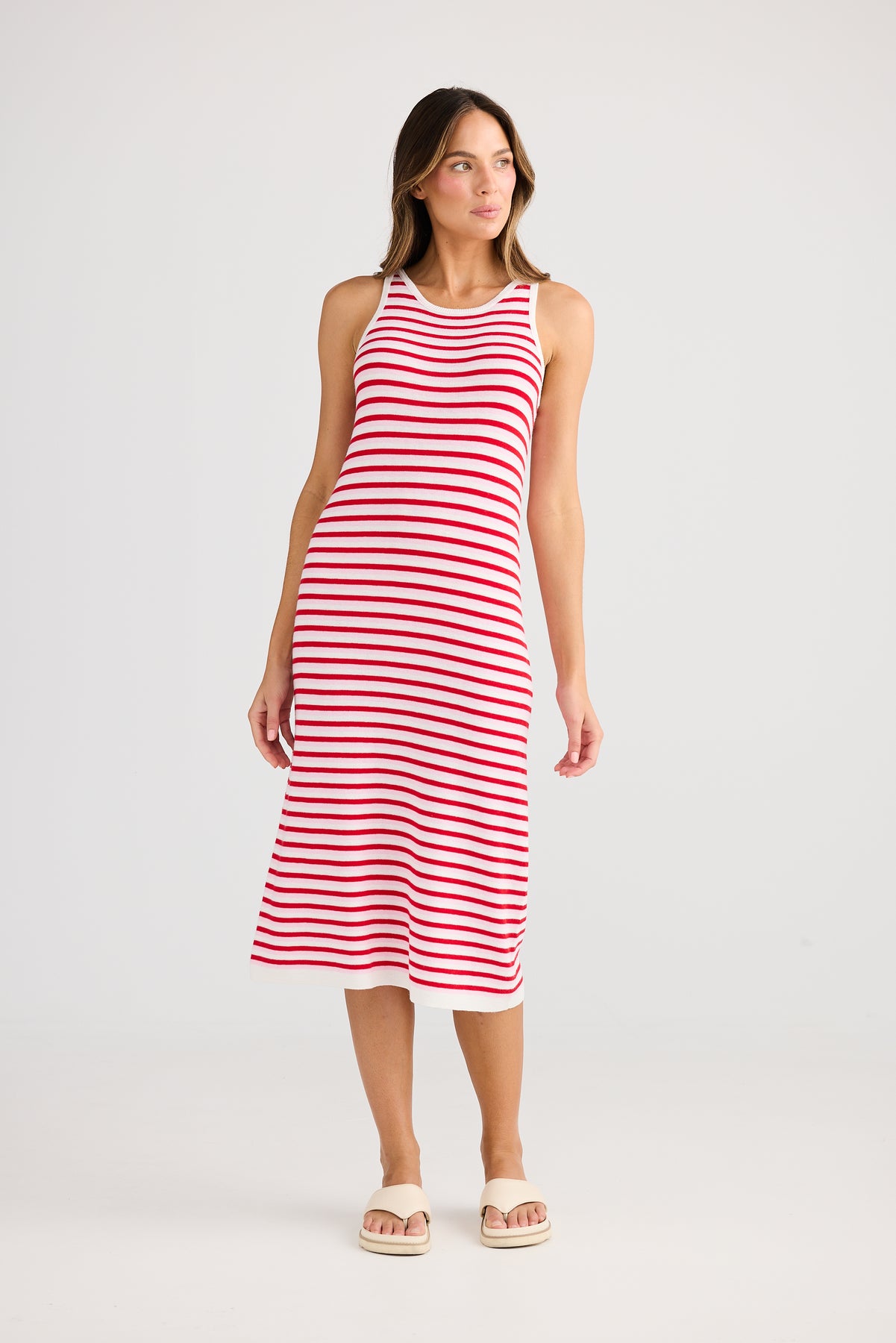 The Holiday Nautical Dress in Pink Stripe is your go-to for sunny days and breezy evenings. Featuring a flattering round neckline and sleeveless design, it keeps you cool and stylish. The midi length and fitted body gently hug your silhouette before flaring out at the hem, creating a fun, flirty movement with every step. Crafted from fine knit fabric, this dress combines comfort with a touch of sophistication. Whether you’re sailing through the day or dancing under the stars, this playful yet elegant dress makes every moment feel like a seaside getaway.