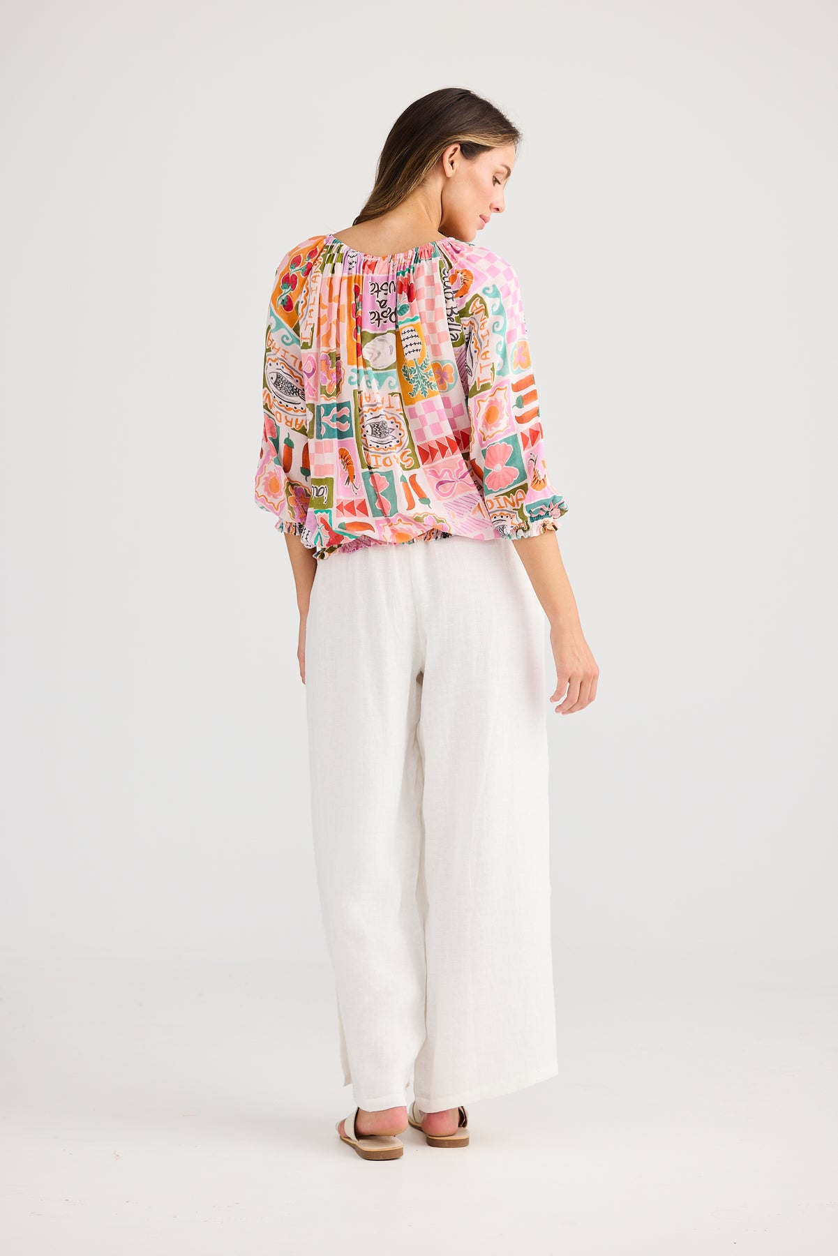 Embrace sunny days in the Holiday Seaside Top Sardinia Summer, designed with playful neck ties adorned with cute tassels that add a fun, breezy vibe. Its full-length raglan sleeves provide a relaxed silhouette, while the charming shirring on the cuffs and waistband creates a flattering, gathered look. Made from 100% soft, printed modal fabric, this top feels light and gentle against your skin, perfect for warm summer adventures or leisurely seaside strolls. Let this comfortable and stylish piece brighten your wardrobe with effortless holiday flair.