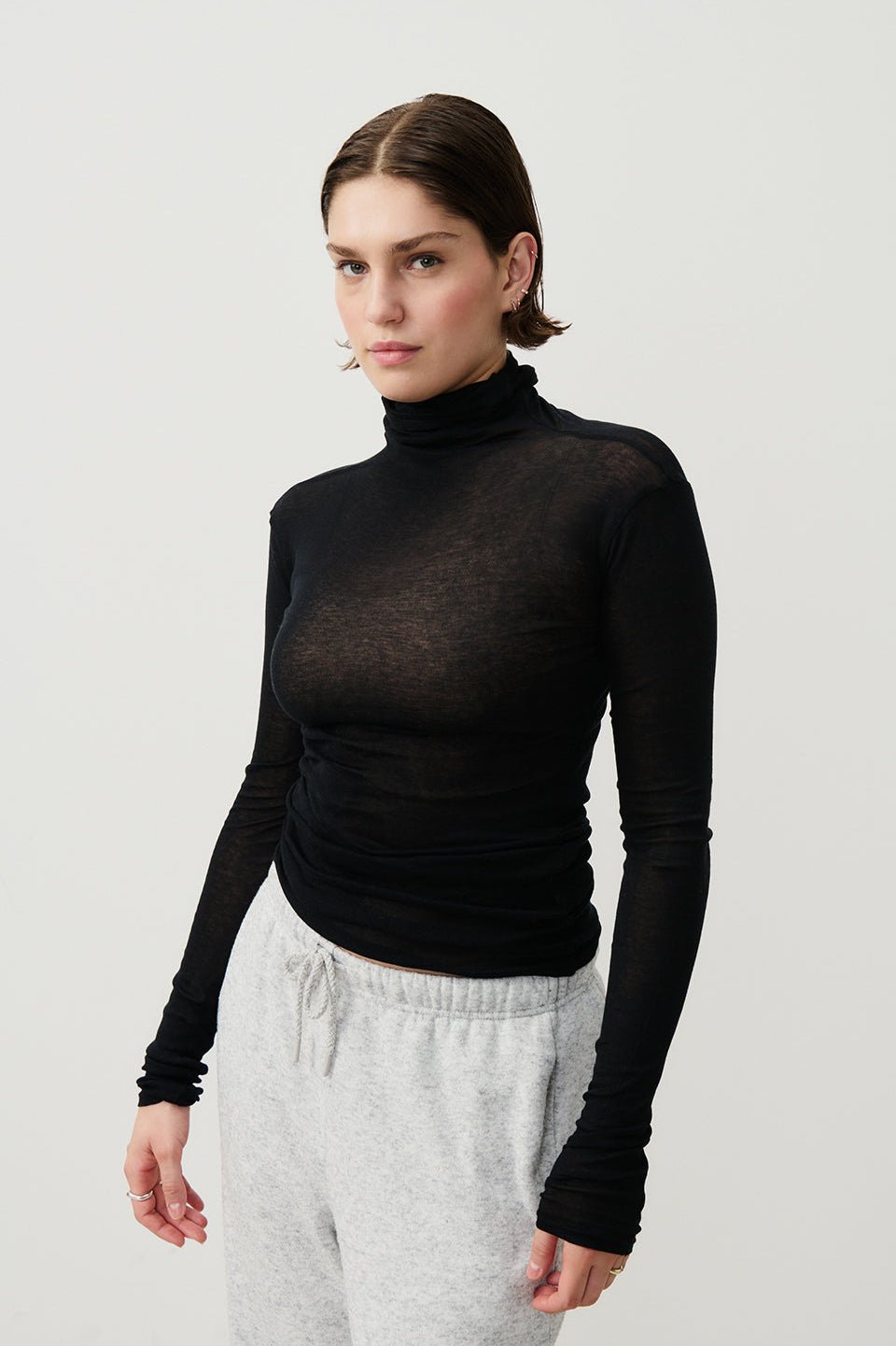 The Massachusetts long-sleeved, roll-neck T-shirt is a wardrobe staple. Made from ultra-lightweight, soft and slightly sheer Supima cotton, it offers a delicate, second-skin effect. Perfect for layering, it can be worn under a cardigan or on its own with a bra, depending on your mood.