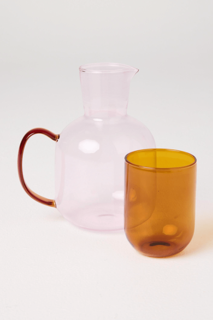 Stay cool, stay colourful! The Marshmallow And Marmalade Carafe & Glass is the ultimate summer sidekick, bringing style (and hydration) to any occasion. From sangria sessions to fresh lemonade, this set is here to keep the good vibes flowing. Featuring a marshmallow pink carafe with marmalade orange handle and matching glass.