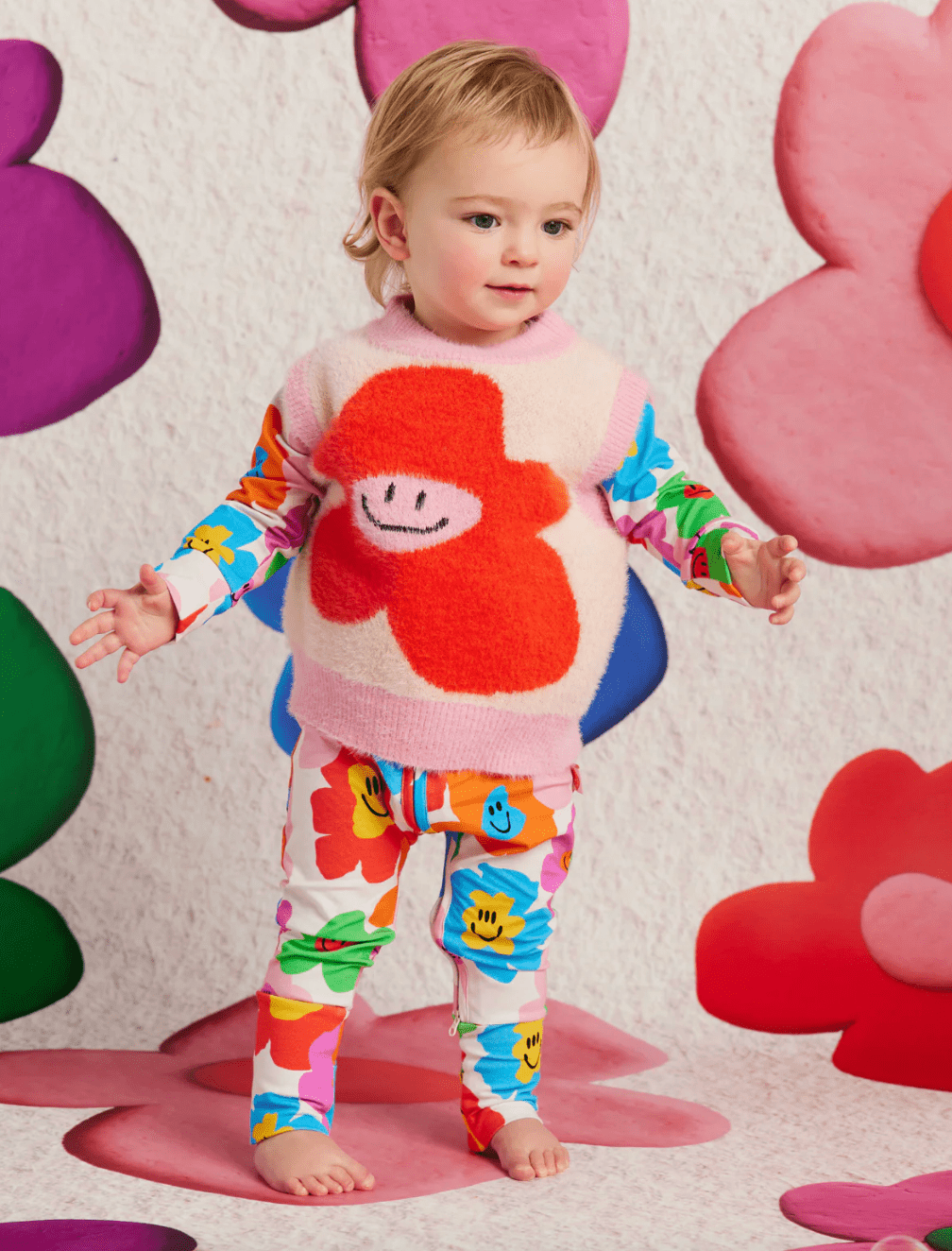 Features Hej Blomma! details in soft fluffy yarn, and playful contrast trims for a pop of fun.