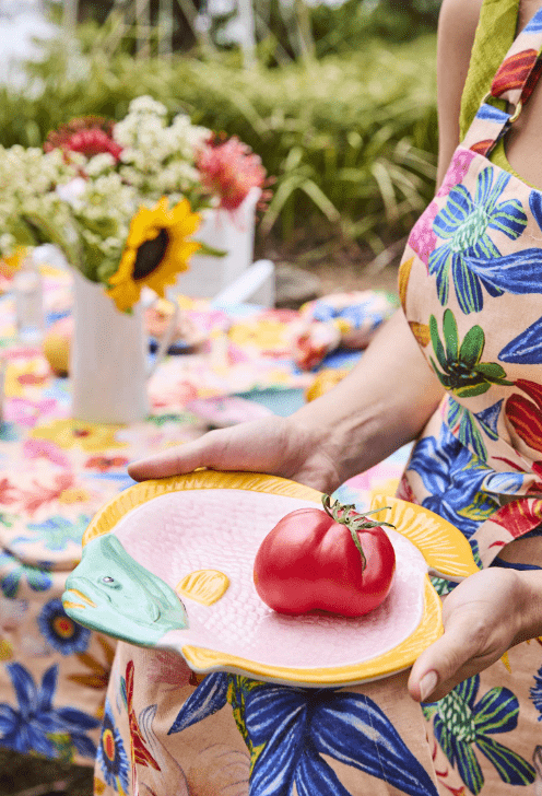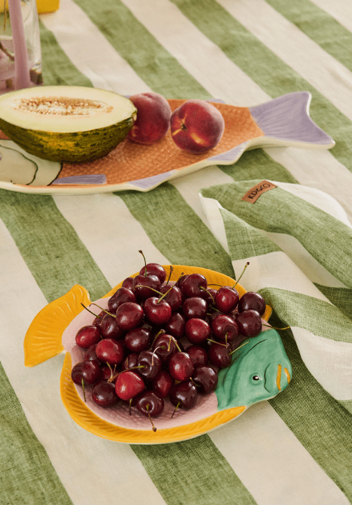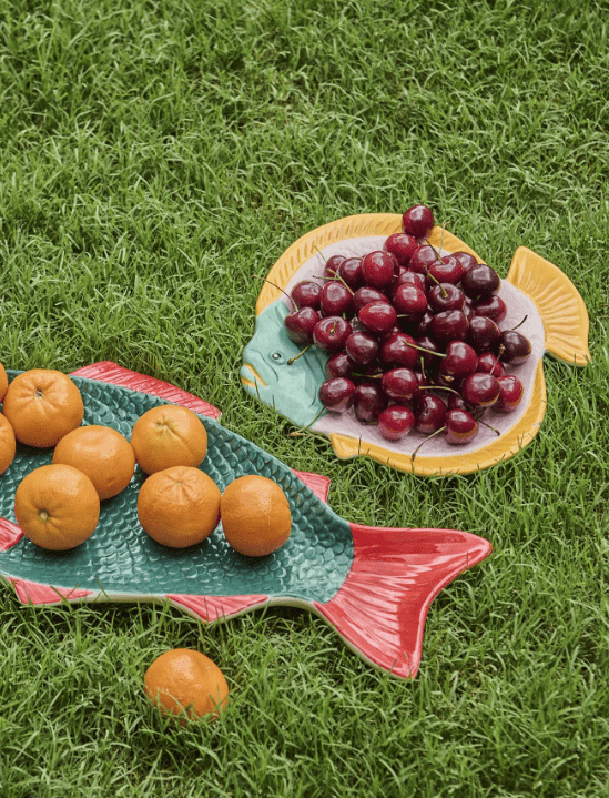 Bring the beach to your table! The Coral Bay Fish Serving Dish, in soft pink with a bold green face and sunny saffron fins, is ready to plate up prawns, tropical fruit, or any summery spread. With its playful shape and vibrant colours, this fish-shaped platter carries the carefree spirit of the seaside straight to your dining table.
