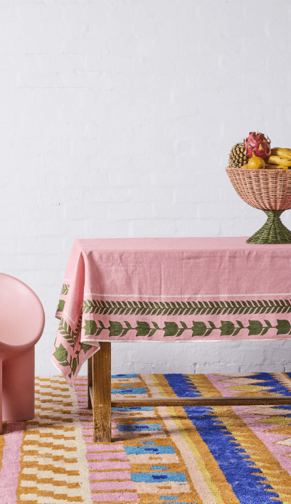 Bring a touch of charm to your summer table. The Flower Chain Embroidered Tablecloth, made from a lush linen-cotton blend, features a pretty pink base with a green tulip flower border and a white embroidered edge. Elegant yet playful, it’s perfect for casual lunches, alfresco brunches, or adding a sweet, textural detail to everyday meals. Pair with our range of napkins and colourful tableware for a fresh, styled table setting that feels effortlessly put together.