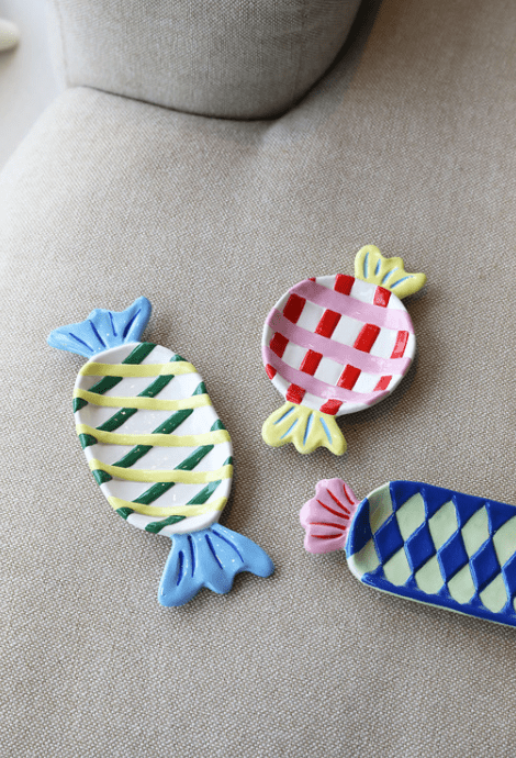 The hand-painted goody plate adds a touch of sweetness to your table. Pair it with our other popular candy-themed items to create a delightful collection. Collect all the candy plates for a complete set that you can enjoy year-round!
