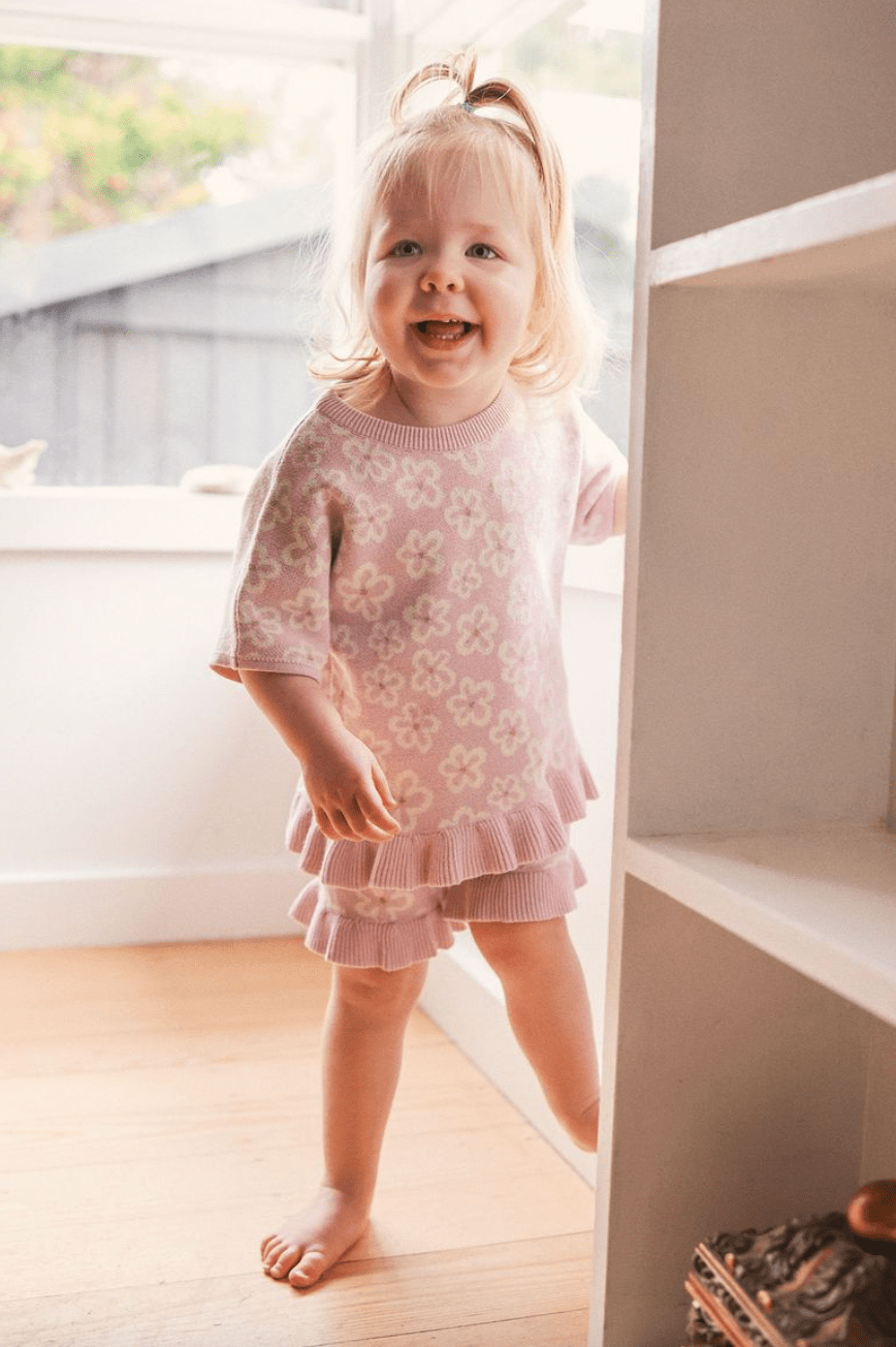 Kynd Baby Jacquard Knit Frill Tee- Frangipani