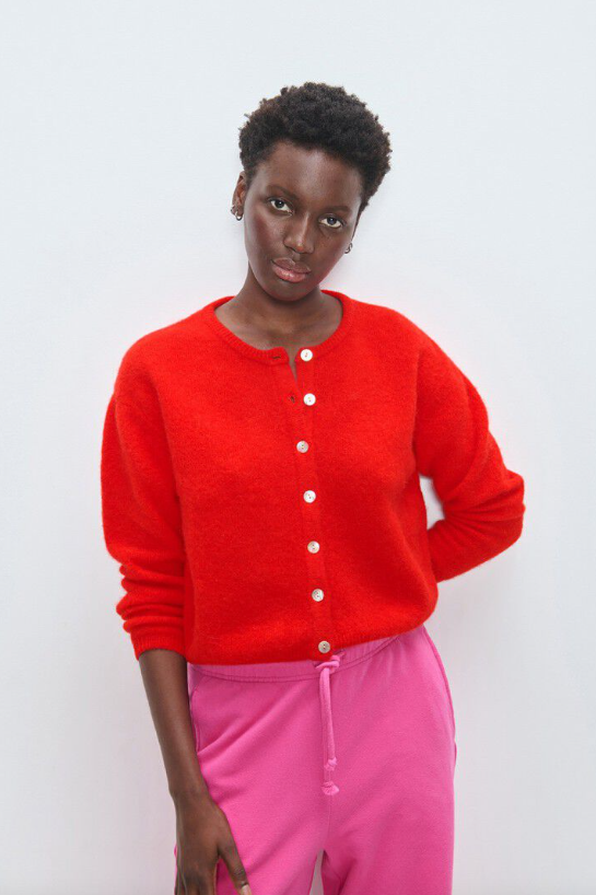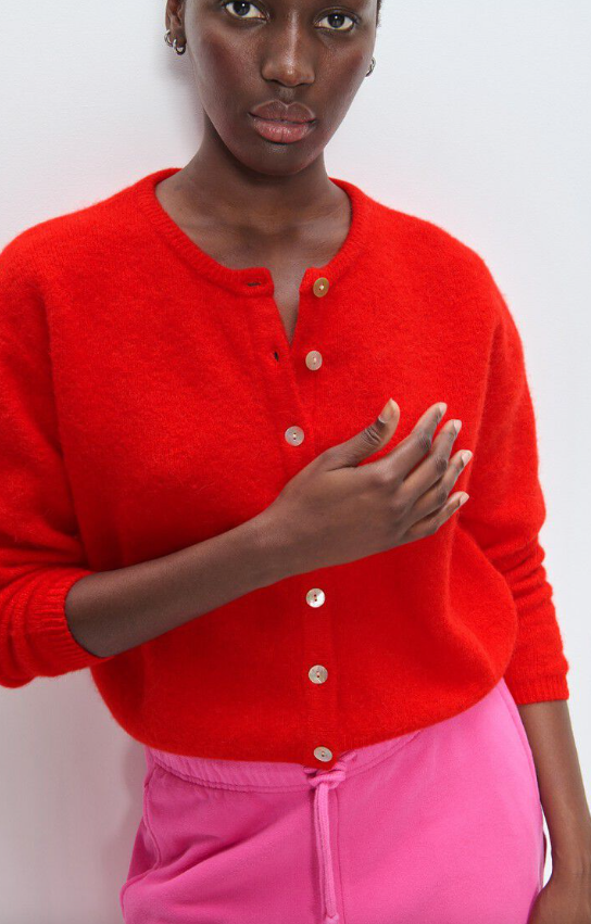 The Vitow cardigan is an iconic piece in the American Vintage wardrobe. Its ball cut and fluffy, warm and cosy knit make it one of the brand's flagship models. Knitted from premium Italian yarn, it offers a soft, compact and warm texture. Versatile and easy to layer, it can be worn open or closed, on its own or over a second layer, depending on your mood. Available in a wide range of colours, the Vitow cardigan complements everyday outfits with style and comfort, and remains our iconic premium knitwear season after season.