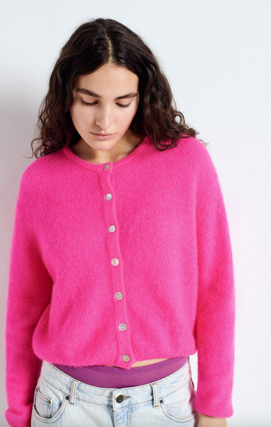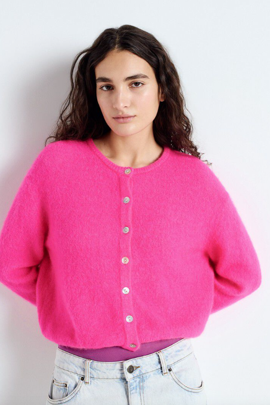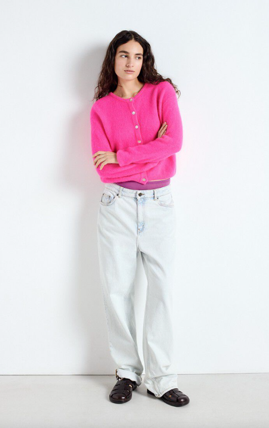 The Vitow cardigan is an iconic piece in the American Vintage wardrobe. Its ball cut and fluffy, warm and cosy knit make it one of the brand's flagship models. Knitted from premium Italian yarn, it offers a soft, compact and warm texture. Versatile and easy to layer, it can be worn open or closed, on its own or over a second layer, depending on your mood. Available in a wide range of colours, the Vitow cardigan complements everyday outfits with style and comfort, and remains our iconic premium knitwear season after season.