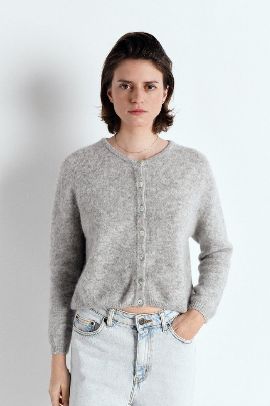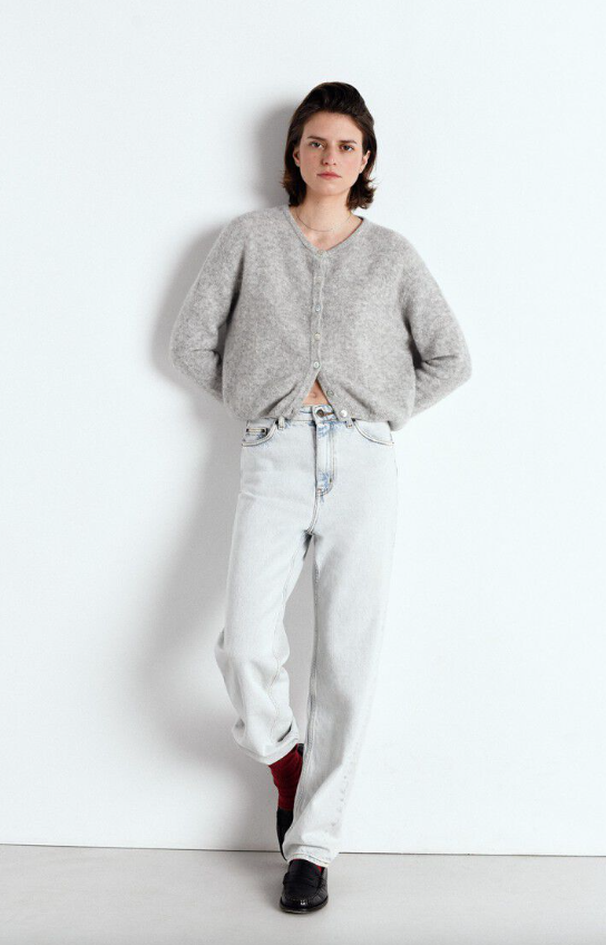 The Vitow cardigan is an iconic piece in the American Vintage wardrobe. Its ball cut and fluffy, warm and cosy knit make it one of the brand's flagship models. Knitted from premium Italian yarn, it offers a soft, compact and warm texture. Versatile and easy to layer, it can be worn open or closed, on its own or over a second layer, depending on your mood. Available in a wide range of colours, the Vitow cardigan complements everyday outfits with style and comfort, and remains our iconic premium knitwear season after season.