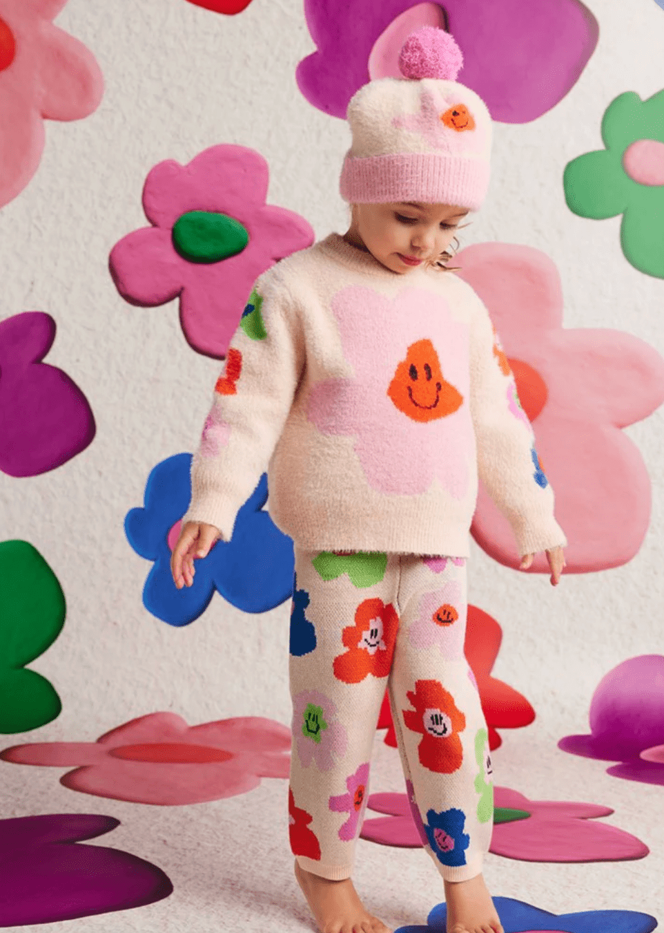 Featuring a soft elasticated waistband for easy changes and all-day comfort, plus a playful picture knit design from our Hej Blomma! collection. Perfect for little explorers on chilly days!