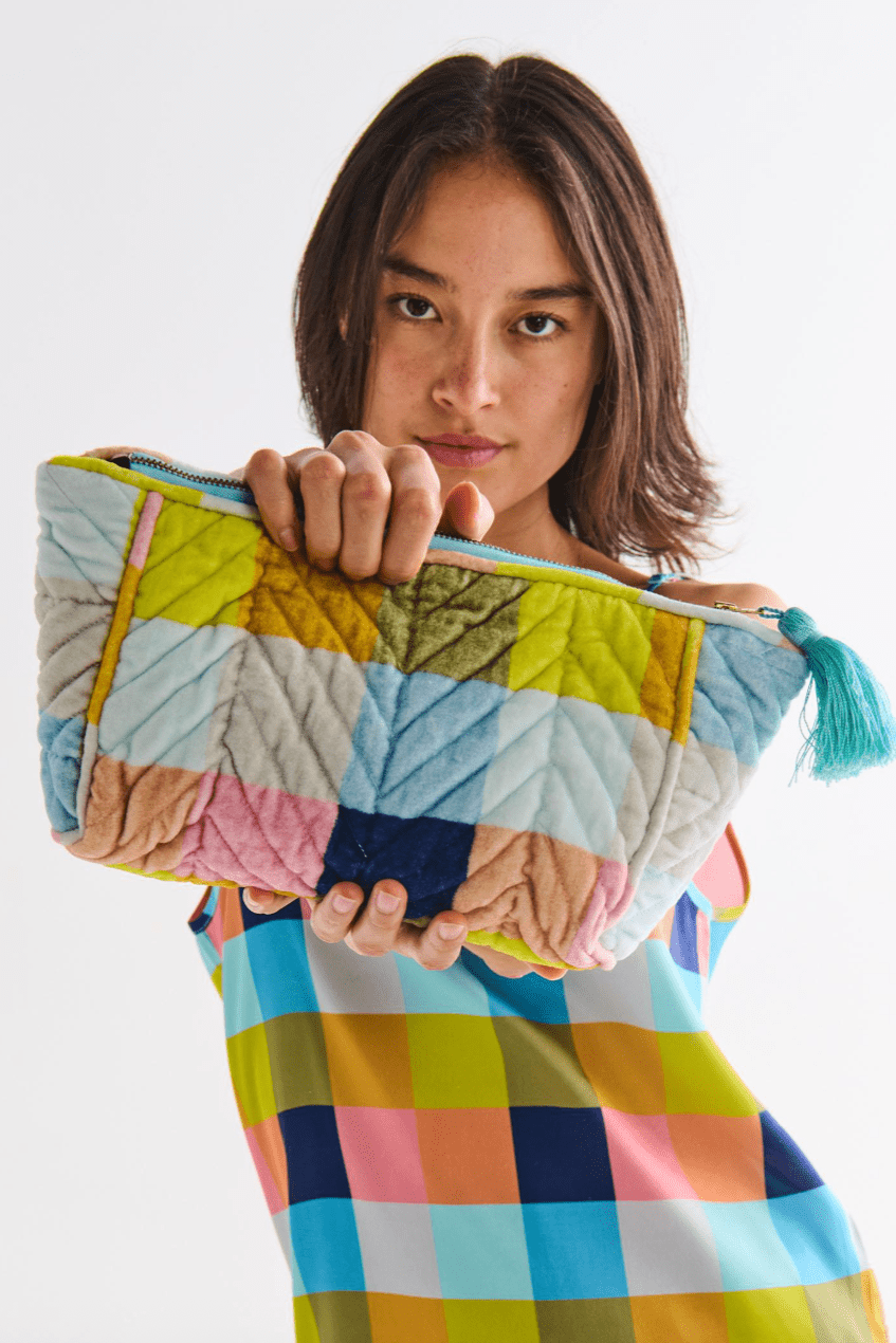 Kip and Co Florida Tartan Velvet Toiletry Bag