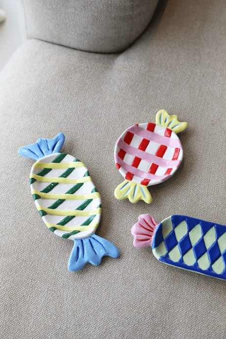 The hand-painted goody plate adds a touch of sweetness to your table. Pair it with our other popular candy-themed items to create a delightful collection. Collect all the candy plates for a complete set that you can enjoy year-round!