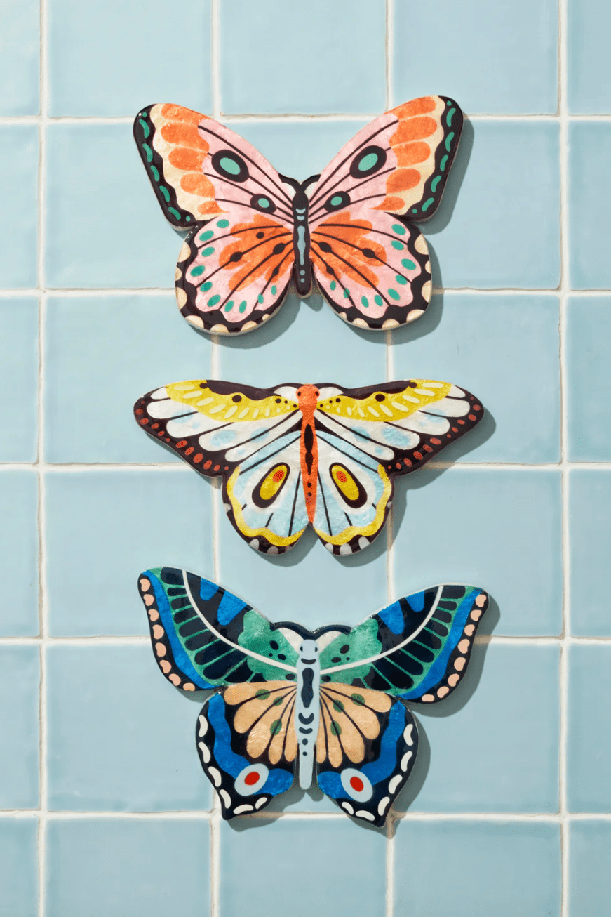 Rainforest greens and deep-sea blues mix with soft peachy tones on this striking blue and green butterfly wall art. Handcrafted from natural capiz shell, each one is a little piece of tropical magic, perfect for walls craving colour. Team our capiz shell wall art with framed prints in a gallery wall for a collected aesthetic.