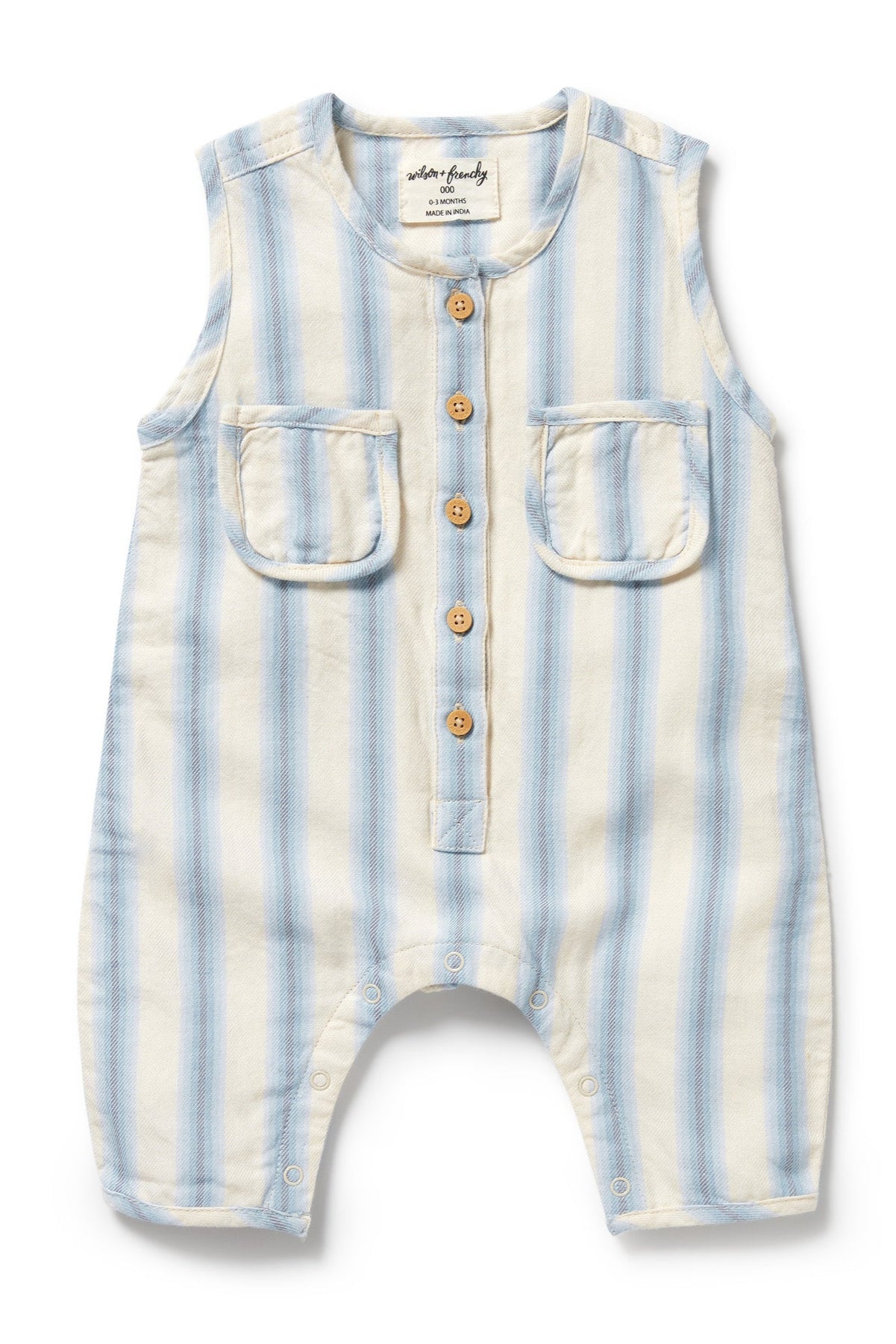 Wilson and Frenchy Deep Blue Stripe Organic Growsuit